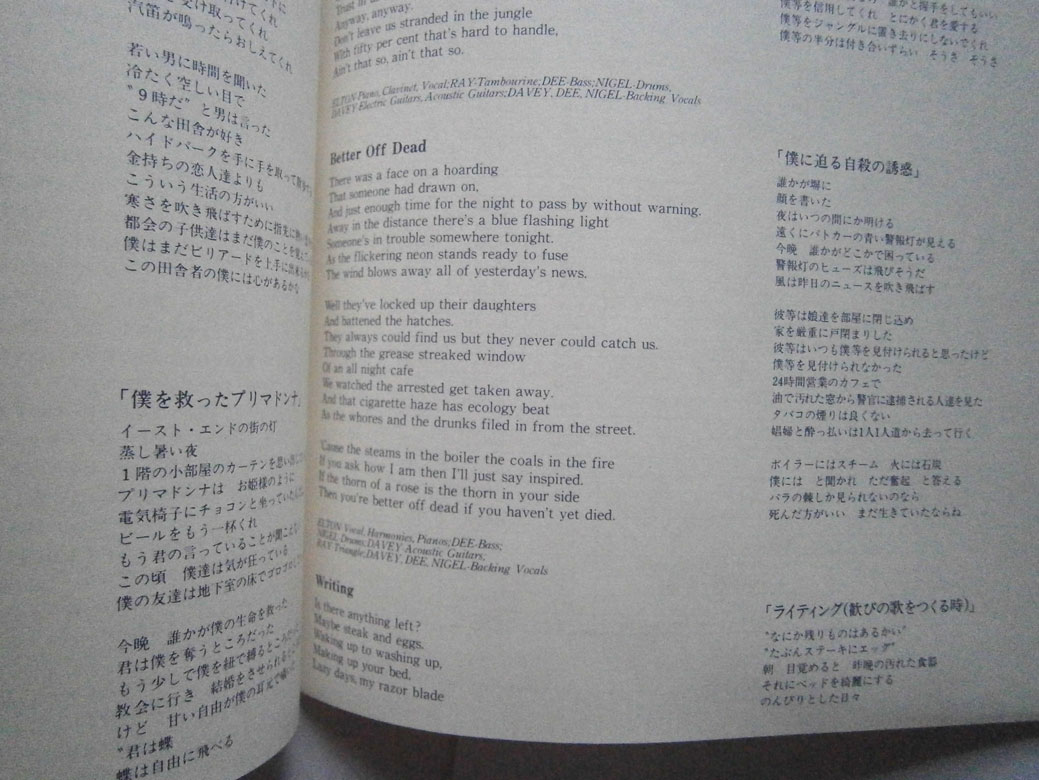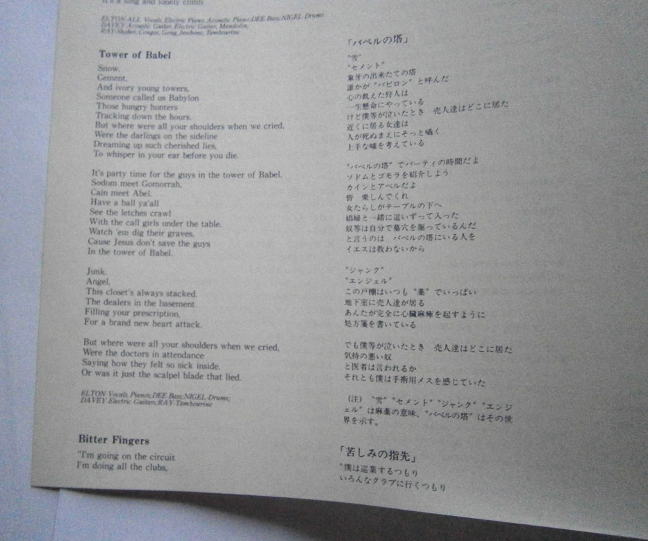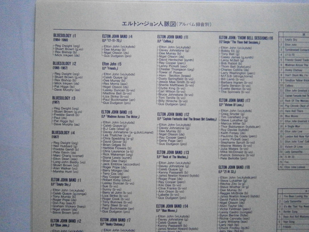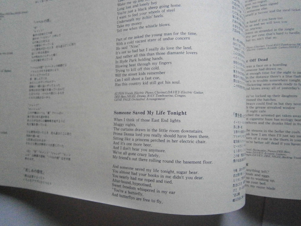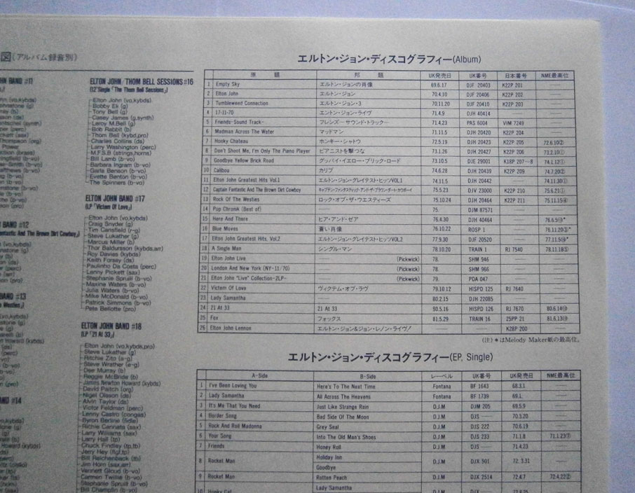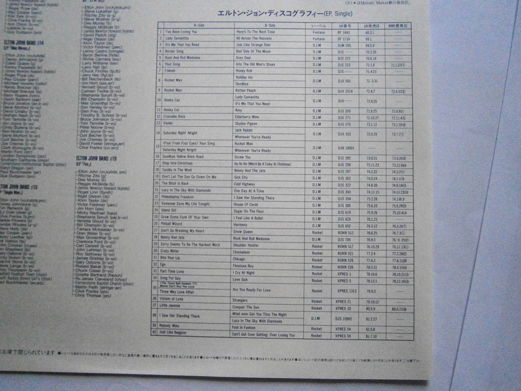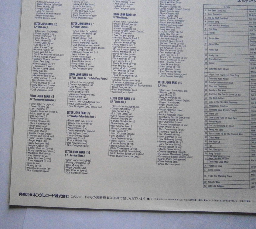 ELTON JOHN / CAPTAIN FANTASTIC AND THE BROWN DIRT COWBOY エルトン・ジョン / キャプテン・ファンタスティック (LP-0241) エルトン・ジョンの「キャプテン・ファンタスティック」は1975年リリースのアルバム。 エルトンとパーニーのデビューまでの事をモチーフにしたコンセプトアルバム。 ジャケット、盤ともコンディション良好です。帯の裏にシワあります。 盤区分 : LP オリジナル型番 : K22P-210 在庫状態 : 売り切れ ¥2,000(税込) 只今お取扱い出来ません