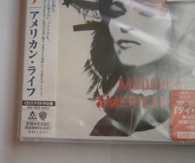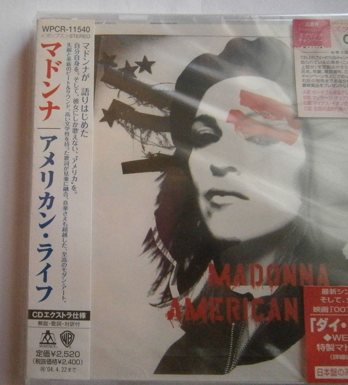 MADONNA / AMERICAN LIFE マドンナ / アメリカン・ライフ (CD-0382) マドンナの「アメリカン・ライフ」は2003年リリースの9作目のアルバム。 未使用品です。 盤区分 : CD オリジナル型番 : WPCR-11540 在庫状態 : 売り切れ ¥4,000(税込) 只今お取扱い出来ません