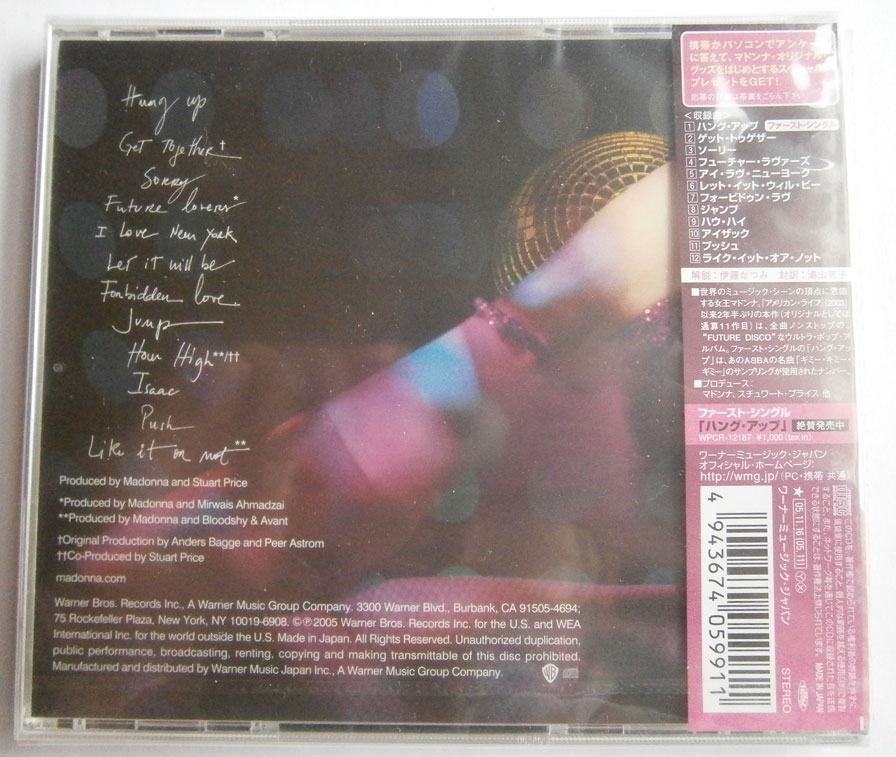 MADONNA / CONFESSIONS ON A DANCE FLOOR マドンナ / コンフェッションズ・オン・ア・ダンスフロア (CD-0398) マドンナの「コンフェッションズ・オン・ア・ダンスフロア」は2005年リリースの10作目のアルバム。 未使用品です。 盤区分 : CD オリジナル型番 : WPCR-12200 在庫状態 : 在庫有り ¥4,000(税込) 数量
