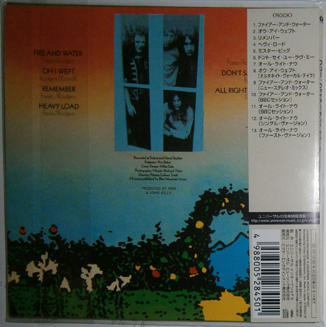 FREE / FIRE AND WATER フリー/ファイアー・アンド・ウォーター (CD-0210) 1970年リリースのフリーの「ファイアー・アンド・ウォーター」は、大ヒット曲「オール・ライト・ナウ」を含む傑作アルバム。 未使用品です。 盤区分 : CD オリジナル型番 : UICY-9132 在庫状態 : 売り切れ ¥2,100(税込) 只今お取扱い出来ません