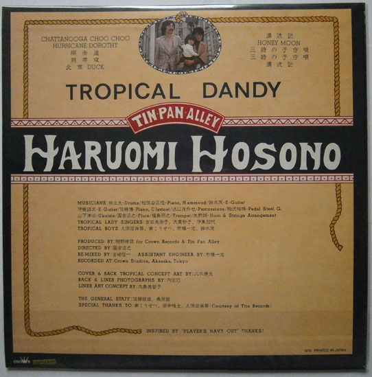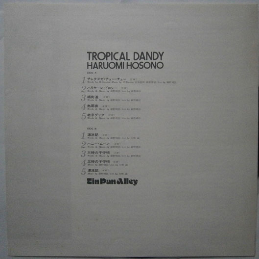 細野晴臣 / トロピカル・ダンディー 細野晴臣 / トロピカル・ダンディー (LP-0065) 細野晴臣の「トロピカル三部作」の第1弾アルバム。1975年発売の通算2作目。 コンディション良好です。 盤区分 : LP オリジナル型番 : PANAM-GW-4012 在庫状態 : 売り切れ ¥3,800(税込) 只今お取扱い出来ません