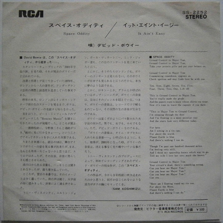 DAVID BOWIE / SPACE ODDITY デヴィッド・ボウイ / スペイス・オディティ (EP-0058) スリーブにシワ、くぼみ(右頬)があります。盤にスレあります。(写真ご参照ください) 盤区分 : EP オリジナル型番 : SS-2252 在庫状態 : 売り切れ ¥1,700(税込) 只今お取扱い出来ません