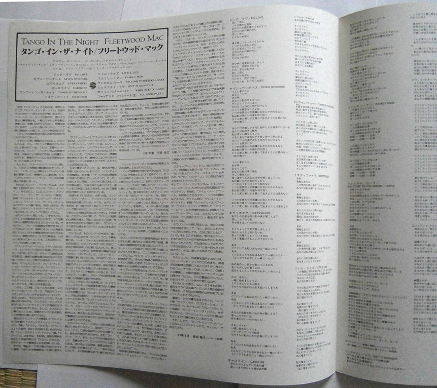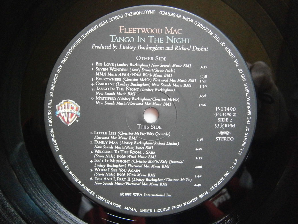 FLEETWOOD MAC / TANGO IN THE NIGHT フリートウッド・マック / タンゴ・イン・ザ・ナイト (LP-0091) 1987年にリリースされたフリートウッド・マックのバンドとしては通算18枚目のアルバム。 ジャケット表面左上にシワがあります。 盤区分 : LP オリジナル型番 : P-13490 在庫状態 : 売り切れ ¥1,700(税込) 只今お取扱い出来ません