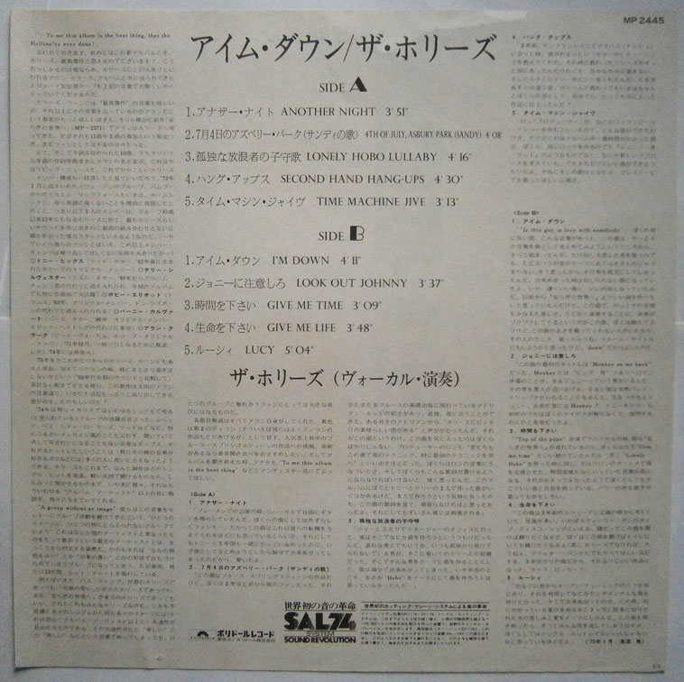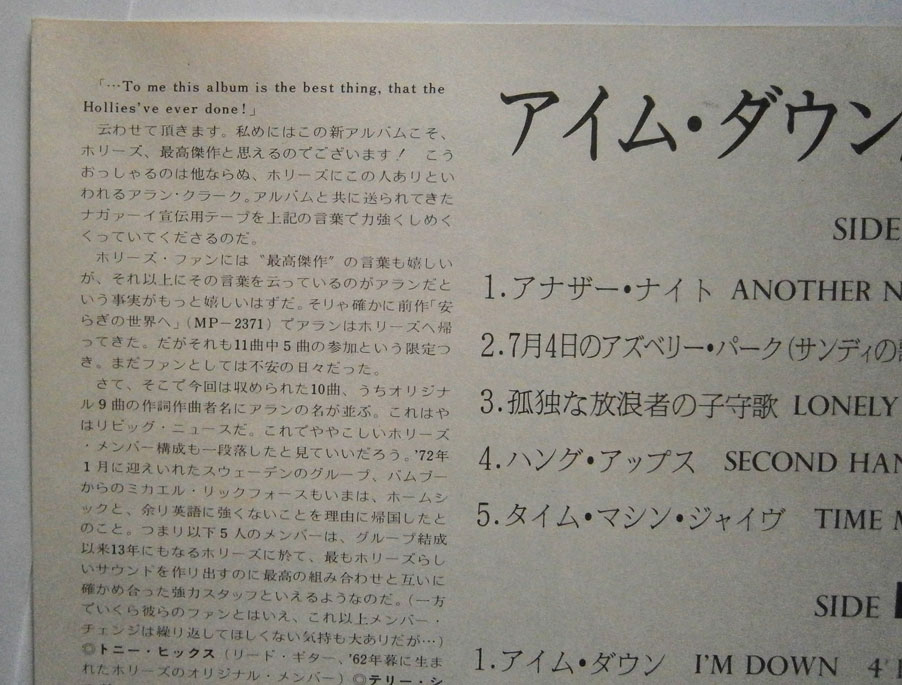ANOTHER NIGHT / HOLLIES アイム・ダウン / ホリーズ (LP-0110) ジャケット角にヘコミ、傷部分があります。ライナーノーツに破れ、折れスジが入った箇所があります。(写真ご参照ください) 盤区分 : LP オリジナル型番 : MP 2445 在庫状態 : 売り切れ ¥2,300(税込) 只今お取扱い出来ません