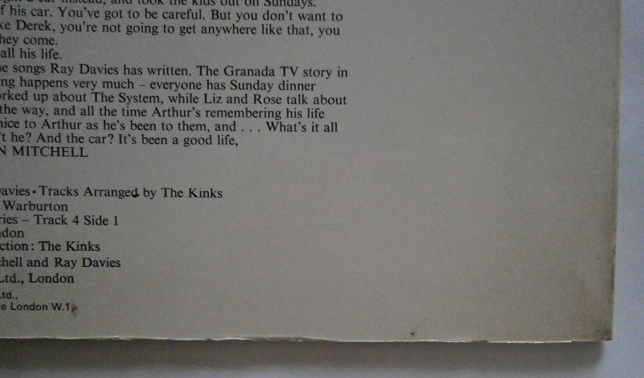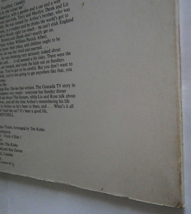 KINKS / ARTHUR OR THE DECLINE AND FALL OF THE BRITISH EMPIRE キンクス / アーサー、もしくは大英帝国の衰退ならびに滅亡 (LP-0141) 「ヴィレッジ・グリーン・プリサベーション・ソサエティ」に続くキンクスの1969年リリースのコンセプト・アルバム。「ヴィレッジ・グリーン」に比べてロック・サウンドへの回帰が見られる作品。 ジャケット表面にスレがあります。ジャケットにシワ、汚れ、角に傷みあります。 盤区分 : LP オリジナル型番 : UPS-544-Y 在庫状態 : 売り切れ ¥2,200(税込) 只今お取扱い出来ません
