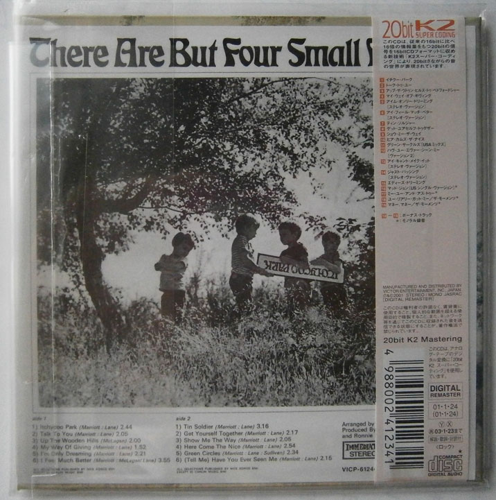 SMALL FACES / THERE ARE BUT FOUR SMALL FACES スモール・フェイセス / ゼア・アー・バット・フォー・スモール・フェイセス (CD-0323) 英国ロンドン出身のスモール・フェイセスがアメリカで発表したファン必携の編集盤。「イチクー・パーク」「トーク・トゥ・ユー」収録。1968年作品。 紙ジャケ仕様。未使用品ですが、帯裏の下部分にシミがあります。 盤区分 : CD オリジナル型番 : VICP-61244 在庫状態 : 売り切れ ¥2,500(税込) 只今お取扱い出来ません